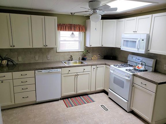 Absolutely mint condition double wide 1344 sq ft mobile home in Jo Len Village, a popular 55+ east side park. Stunning kitchen make over with Shrock cabinets-tile backsplash and all white appliances is a gourmet's dream come true! Separate dining area open to front to back cathedral ceiling family with wood burning fireplace. 3 spacious bedrooms with plenty of closets. 2 full baths including luxury master bath with skylit tile shower. Sliders to sunsplashed 30' deck. Convenient carport and extra large storage shed. Economical gas heat. Carefree vinyl siding. Easy access to major routes, dining, shopping and entertainment. Just minutes to Marlborough Country Club and Memorial Beach. Monthly park fee includes taxes, trash, water, sewer, road plowing and lot rent A must see!