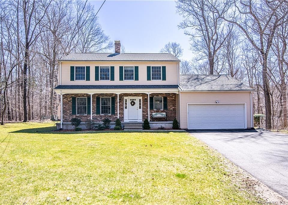 Set back on over an acre of land, this colonial sits among the trees and invites you to live a quiet and private country life-style…rock away the afternoon on the front farmer’s porch or host a barbecue on the large back deck that overlooks a large yard edged by woods. This spacious home has an open first floor plan with a combination of hardwood and vinyl flooring. The updated kitchen features beautiful wood cabinets, granite counters, tiled backsplash and stainless appliances and opens to a casual dining area and cozy family room perfect for entertaining. Watch the leaves turn and the snow fall from the two sets of sliders that let the sunlight stream in to this space and open onto a large elevated deck. The formal living room features a wood-burning fireplace surrounded by brick and connects to the dining room that has wainscoted walls. A half-bath and a laundry room are also tucked into the main hallway. Upstairs, there are four big bedrooms plus two full (and re-modeled) bathrooms, one being in the master suite. A garage with a workshop, a paved driveway and a large outdoor shed completes the property. Own a few of your own stone walls, hear the birds sing and listen to the rustle of the trees, getting back to nature in this country home in Ledyard.