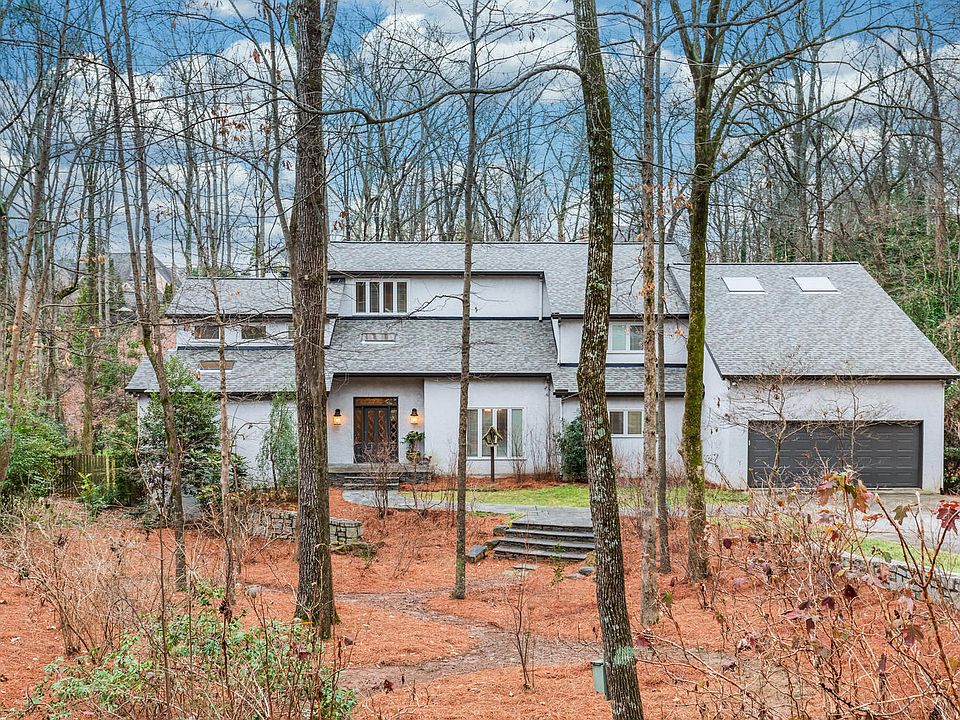 True contemporary in magical setting inside the Perimeter, prime close-in location. A private oasis in the city where nature sings and parades daily, a crackling fire in the great room warms heart & soul on a chilly day or the sparkling pool beckons on a warm one. Big open spaces, soaring windows, master on main, roomy bedrooms, baths & bonus room up. Chef will love huge Dacor range/oven & ideal layout for entertaining. Amazing pool terrace level & outdoor living spaces. Bonus garage & huge wkshop & hobby rooms. Mins to 285, Holy Innocents school.