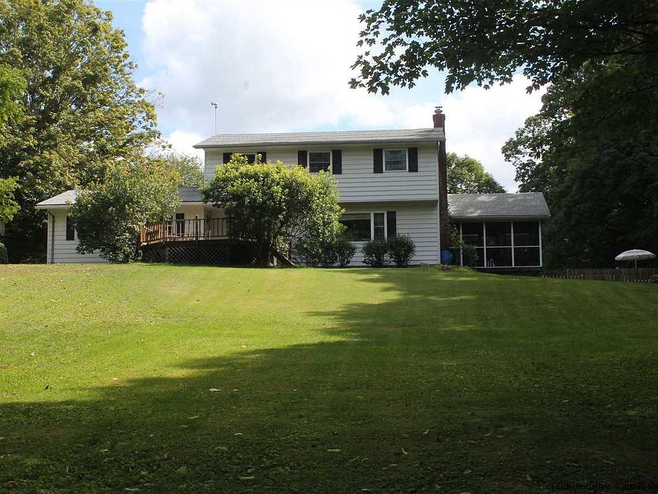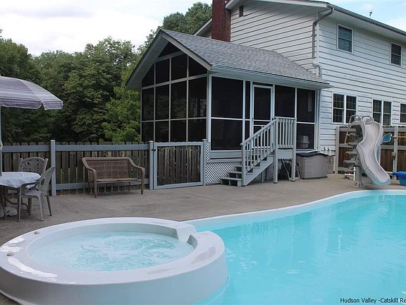 Lovely neighborhood in very desirable Blue Mountain. This 1.20 acres, 4 Bd/ 2.5 Bath Colonial Style home sets on a hill with seasonal mountain views, lush grass, a running stream and a private back yard. This home has spacious rooms with the new windows bringing in natural light and fresh air. The flow is wonderful for entertaining. The living room has a brick fireplace, a large kitchen with wood cabinets w/ corian counters, stainless appliances and the dining room with French doors to the screened in porch. Half bath on main level with the washer and dryer. The second story has 4 bedrooms and a full bath, with the primary bedroom having its own bathroom. The Screened in porch is fabulous, offering a private place to relax. The icing on the cake is the Fiberglass (no liner!), inground heated, 16x36, salt water pool with attached hot tub, the perfect "staycation". The family room is in the finished basement. Craft room, game room, and dry bar and still room for a workshop. This home will not disappoint!