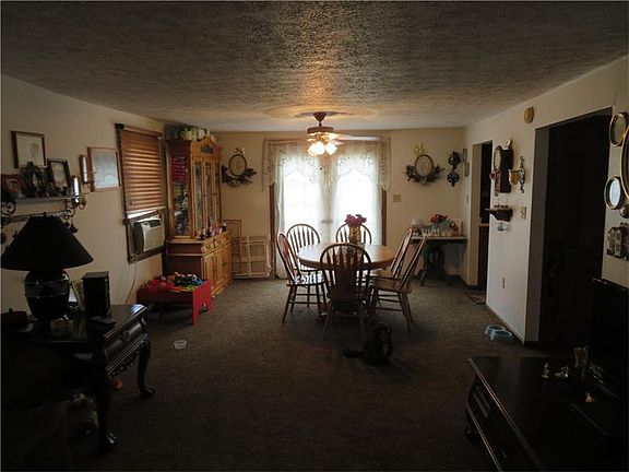 Open floor plan. Big living room / dining room with a french door that opens to the rear deck. New carpet in living room. Large game room is L-shaped and has an electric fireplace. It has an area for a real wood burner. One care garage with a car port.