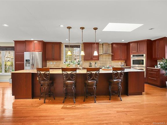 On the cul-de-sac in a desirable Tashua neighborhood, Welcome to 34 Stemway! This sprawling ranch is sure to impress. Over 4,000 Square Feet of living space the opportunities are endless2,941 sqft on the main level & 1,350 sqft in the finished lower level. Upon entering, you will fall in love with the open floor planan entertainer's dream. The custom kitchen is out of a magazine. An extraordinary amount of cabinet & counter space. High-end appliances; Frigidaire Gallery series, double ovens, gas cooktop w/ hood. The kitchen island makes a statement well over 15 wide and complete with: wine cooler, prep sink, deep/wide main sink, dishwasher, and seating for the entire family! Just off the kitchen is a custom bar area matching cabinet/countertops seamlessly tying the space together. Completing the first floor is a master bedroom suite + two additional bedrooms. Every bedroom has a private bath! The lower level is a versatile space. It is comprised of a spacious living room, good size bedroom, and 1.5 baths, walk-out sliders, small office space. With a bit of work, this lower level can be a great in-law. Nat. gas, city sewer (no assessment!) & C/A. Future expansion possible: balcony off the master bedroom & lower level covered patio inquire for details. Anderson windows on the main level, vinyl replacement (lower level). An all around great value, dont miss this opportunity to establish home in a great Tashua neighborhood!