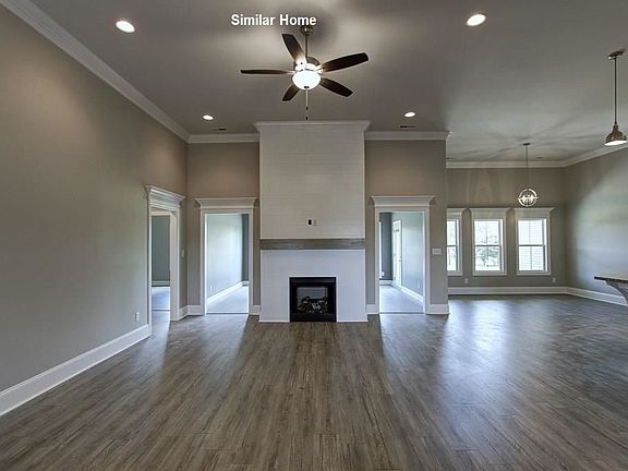 MOVE IN READYUpgrades included in price:Gas Cook Top with Double Oven Package.French Doors into Sunroom.Under cabinet lights.All brick Bellewood Plan A is an open plan with a 3 car side entry garage backed by a 2-10 home warranty.. Home has 4 bedrooms, 3 baths and a Sunroom. Home has wood plus flooring (Mohawk Revwood) in all living areas and bedrooms. Great Room features 12' ceiling, extensive trim, gas-log fireplace with upgraded fireplace treatment, wood plus flooring, floor outlet, recessed lights and ceiling fan. Dining room has 10' coffered ceiling, wood plus flooring, extensive trim including shadow box under chair rail. Open Kitchen has 12' ceilings in kitchen, custom cabinetry and granite countertops, large 45-degree island with bar seating, stainless appliances including dishwasher, gas cooktop, wall oven and wall microwave, tile backsplash, wood plus flooring, recessed lighting, and walk-in pantry. Breakfast has 12' ceiling, wood plus flooring and extensive trim. Master bedroom has 11' double tray ceiling, wood plus flooring, recessed lighting, extensive trim and ceiling fan. Master bath has 11' ceilings, glamour tub, large tile shower with rimless door, separate toilet area, double vanity with granite countertops and large walk-in closet. Sunroom has 12' ceiling, wood plus flooring and ceiling fan. The additional bedrooms have 9' ceilings, ceiling fans, crown molding and wood plus flooring. The additional baths have 9' ceilings, tile flooring and granite coun