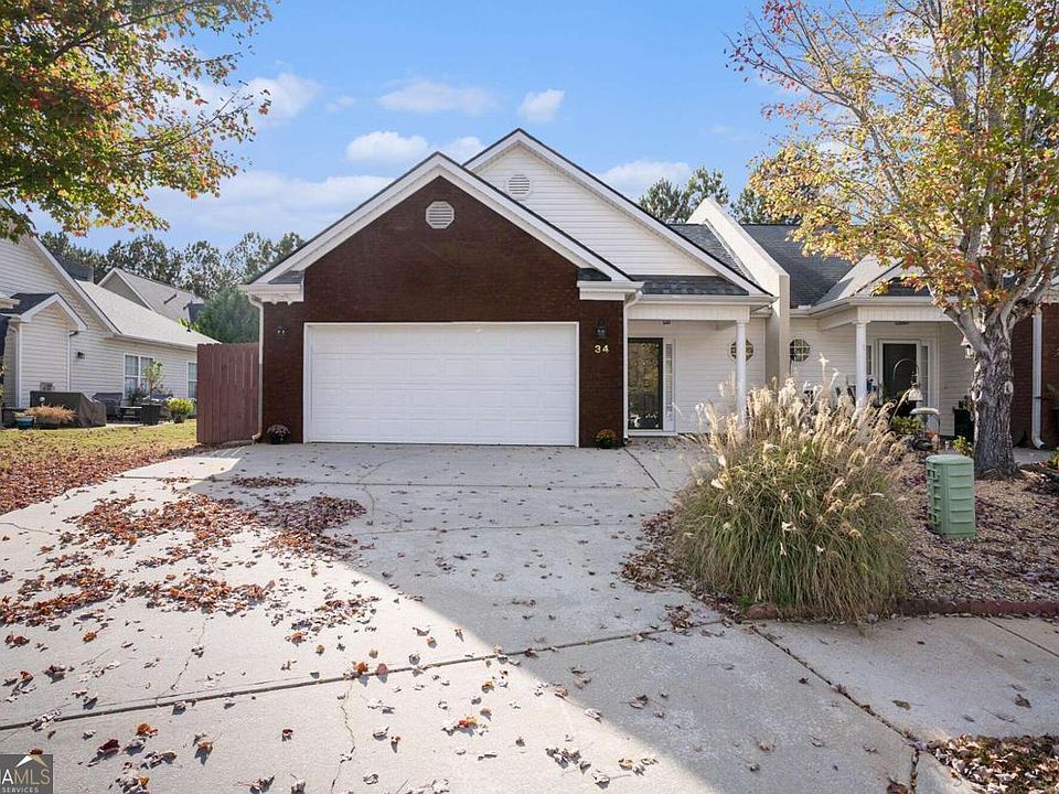 Spotless cottage style SFA home in the most sought after school district in Coweta County offers an ideal low maintenance lifestyle, making it perfect for first time homebuyers, empty nesters, airline support personnel, or people who simply stay on the go and want a little outdoor space without all the upkeep. The HOA fees are a manageable $77 per month and include lawn maintenance. The property has been lovingly maintained, with a New roof in Oct/Nov 2023, New HVAC in Jun 2024 and New garage door springs in 2024. Wood floors throughout except for bathrooms and laundry room. Open concept floorplan provides an open view between the kitchen, dining room, and family room. Family room has a great brick fireplace with a raised hearth and traditional mantle. Primary bath has been updated with new tile flooring. Washer and dryer remain with property. Trey ceilings in dining room area and primary bedroom. Fresh, neutral paint throughout. Amazing fenced area with a patio section on the side of the house makes for a great place to start the day with a cup of coffee or unwind with a glass of wine after work. Yard is maintained by the HOA, but is definitely large enough to accommodate your furry family members. 2 car garage.