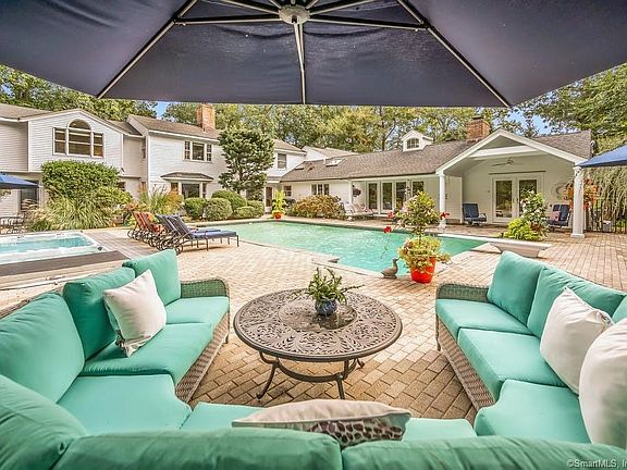 Beautifully presented light filled Colonial on coveted cul de sac in premier neighborhood of Westport. This amazing 6 bed, 7 bath home has been meticulously maintained and updated. Main level has well equipped eat in kitchen with granite countertops. Family room with beamed cathedral ceiling, wood burning fireplace, french doors opening to large patio with swimming pool and swim spa. Formal dining room and living room with gas fireplace. Office overlooking pool, two bedrooms, one en- suite with french doors to pool area. Dual aspect recreational room with wet bar, tiled floor and powder room with french doors.Second level consists of large fabulous bonus room with custom built ins and vaulted ceiling. Spacious primary bedroom overlooking pool area with huge walk in closet and full bathroom and three further bedrooms, one with en-suite.Lots of improvements, including gas conversion, new furnace, 400 amp electrics, 3 a/c condensers replaced, new garage doors, basement restoration, extended irrigation system, ADT alarm system with cameras, new custom built ins, wall ovens, gas cook top, hardwood floors throughout, swim spa, fence and extensive professional landscaping. The gorgeous extensive grounds has large patio area with gunite pool and new swim spa offering all year swimming! Plus large custom built luxury chicken coop and automatic generator. This dream home is the perfect retreat. MUST BE SEEN!!