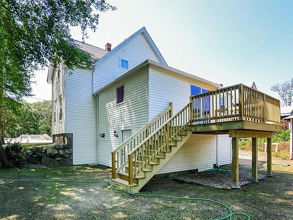 You won't believe this transformation from a turn-of-the-century NE Colonial house to a contemporized, modern home! From top to bottom and inside and out, this is a complete renovation. Windows, doors, roof, siding, walls, flooring, added 2nd bath and 2nd floor laundry room; electrical, lighting - everything! New flooring flows from the living room, through the hallway to an open dining room, through to the eat-in kitchen; with granite counters, stainless appliances; recessed lighting, and sliders to the deck - ALL NEW. The First Floor bedroom - perfect for senior family member/s - features a full bath - also accessible from the kitchen. Lower level has walkout and features poured concrete floor and replaced electrical service to 200 amps; and new FHA heating system, with all new duct work, central air and hot water tank. Nothing has been over-looked. This beautifully and fully remodeled home is located on a dead-end street. And all you need to do is to call the mover!