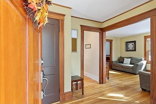 ** Come see this Handsome 4 bedroom Colonial with two full baths *** large Welcoming entryway leads to charming living and dining room; built in china hutch; oak floors * Pretty SS and Granite kitchen leads to covered porch and large yard * bright good looking Family Room on lower level with full bath * great spot to get away from it all. :) This spacious home of Neutral dcor has a warm , peaceful feeling of calm - you cant miss - You are Home!! * Immaculate and well maintained * Owners Pride excellent neighborhood convenient to food shopping, Boston Train ,world class Library, Parks and many fine restaurants