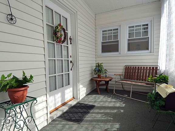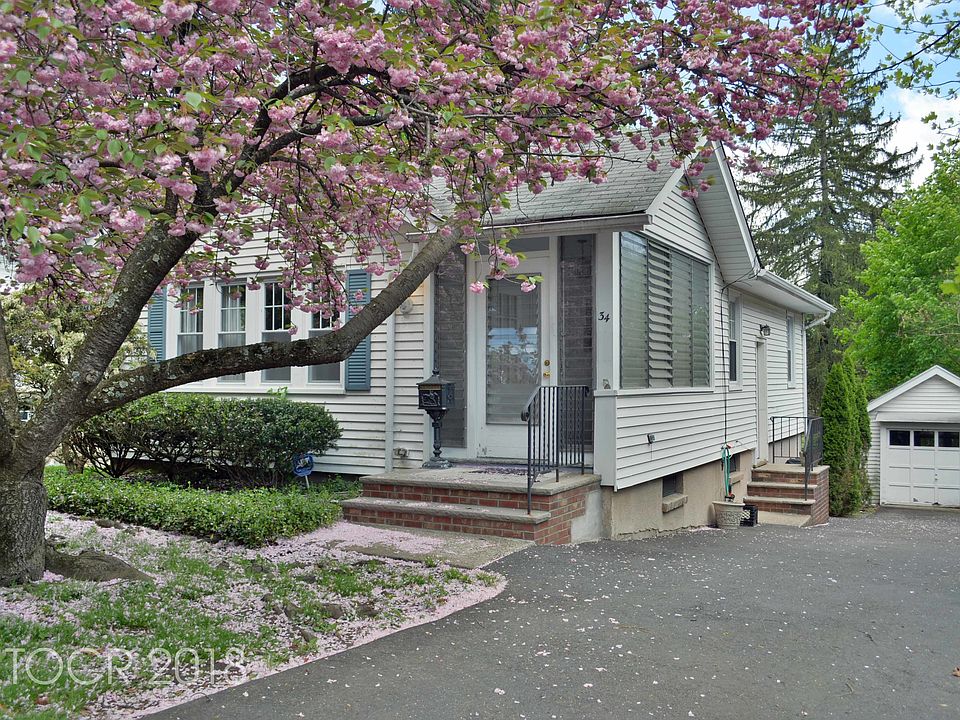 Lovely carriage style ranch on quiet street is an absolute dollhouse! Spend your summer on the enclosed porch or back patio overlooking gorgeous private grounds. Open living room and dining room have lots of windows and gorgeous chestnut trim and h/w floors. The adorable retro. kitchen is the perfect place to bake that pie and have it cool on the open window sill by your enclosed porch. Downstairs is ground level to the rear yard so you have great livable space for playroom and office/br...while still keeping plenty of space for storage. New garage door and all newer: 200 amp electric, w/w cpt., h/w heater, kitchen appliances,dryer,driveway. Great value in a fabulous town that boasts its own electric and water service! Two level garage on property is for storage only.