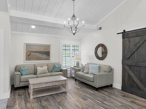 Step into tropical elegance in this beautifully updated Marco Island retreat, where coastal luxury meets effortless comfort. Set on an oversized corner lot, this breathtaking home welcomes you with soaring vaulted ceilings, an open and airy floor plan, and refined beach-cottage décor that perfectly captures the island lifestyle. This 3-bedroom, 2-bath residence has been thoughtfully enhanced with exceptional upgrades throughout. At the heart of the outdoor oasis is a custom concrete pool built in 2022, complemented by a brand-new screen enclosure (2025), a newly installed roof (2025), and a privacy fence (2025) — all adding both beauty and long-term value. Inside, a major remodel elevates every detail. Enjoy brand-new flooring throughout, a stunning chef's kitchen with new cabinetry and custom lighting, new interior doors, elegant base moldings, and sophisticated shiplap accents that lend a polished, luxurious feel. The primary suite and guest bath have been completely redesigned in 2025 with fully permitted renovations, featuring custom tile walk-in showers, new vanities, sinks, and updated plumbing for a spa-like experience.