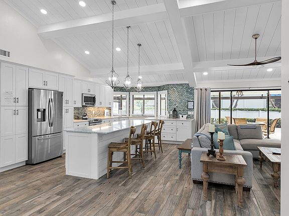 - Built-in Features, Custom Cabinets, Custom Mirror, Volume Ceiling(s), Breakfast Bar, Double Vanity