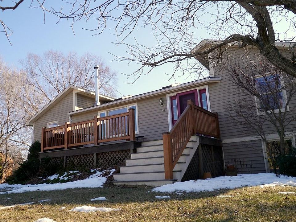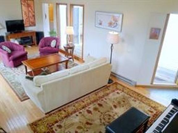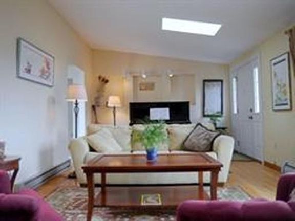 Charm-personified is reflected in this well maintained home. This spacious home offers plenty of room for a large single family or extended family. The first floor has a nice circular flow w/large open eat-in kitchen and living room which shares a rare center house courtyard. The first floor you'll find 4 bedrooms and two full baths. Many renovations including:gas tankless heating system, bathrooms, glass sliding doors roof. Multiple sky-lights and a wood-fired stove add to the warmth of this space. Lots of possibilities with a spacious finished walk out basement including full bath and four finished rooms which could be an in-law or nanny apartment. Nicely landscaped yard offers serenity and space to play or garden. Whether you want a short drive to town center, quick access to bike trail or walk to play fields & conservation trails this is the address for you! Wood stove included in sale.
