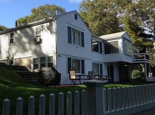 Stunning 4 bedroom waterfront home with 75 feet of frontage on 650+ Acre Wequaquet Lake. Private .79 acre elevated landscaped parcel is one of the larger lots on the lake with sandy beachfront and amazing mile long views from 6 waterside picture windows. Enjoy fishing, swimming, sailing, power boating, and kayaking from your private lakefront retreat. Recent renovations include a new bathroom, ceramic tile, wainscot and carpets on lower level. Year round home with recently replaced kitchen appliances, wide pine floors, glass sliding door, convenient first floor laundry and ample closet space. Two car garage and paved circular driveway, patio, wood deck and granite steps leading to one of the best sandy beaches on the "big lake" section of Wequaquet. Town registered dock permit and permitted mooring. A new 4 bedroom septic system was installed in 2011. Exclusive Tern Lane neighborhood improved many million dollar homes on estate sized lots. Nearby WLYC sailing/social club.