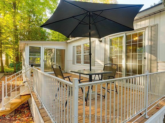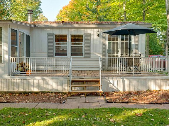 Welcome to Park Place! This cozy one-bedroom bungalow is complete with a bright and cheerful sunroom and gas fireplace. Two large decks provide the perfect spot for entertaining guests while enjoying the outdoors, surrounded by beautiful mature trees. Recent updates include laminate flooring in the living room and sunroom, and a new 10' x 20' front deck. Add your personal touch to make it your new home, in this friendly year-round adult-living community. Monthly fee is $537.38 which includes land lease rent and property taxes. Clubhouse amenities include a heated pool, sauna, library, billiards room, exercise room, woodworking shop, and main hall. Enjoy the many activities including cards, games, darts, shuffleboard, horseshoes, bingo, dances, exercise classes, and more!