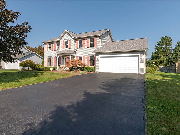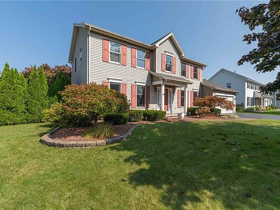 Just Listed!!! The Ashford Design by Caldwell & Cook in Pinebrook! 4 bedroom, 2 & 1/2 bath Colonial! Great room with gas fireplace, 4 season sunroom with knotty pine cathedral ceiling and pellet fireplace, new furnace and a/c 2019, roof 2018, finished rec. room in basement. Patio and shed. (Total sq.' of 2214 includes 4 season sunroom. Plans attached) (Laundry is now in the basement but hookups in rear hall entry on first floor) (Seller to only provide permits currently on file with the Town Of Greece). Move in condition! Better Hurry!! *