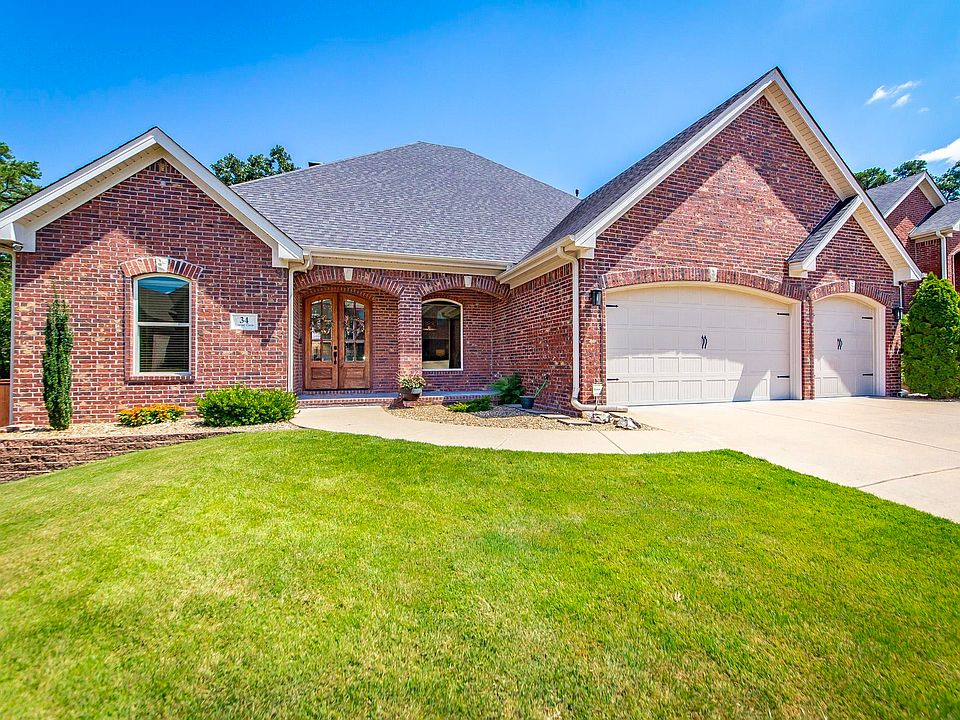 Well-maintained, all-brick one-level home offers 2,983 sq. ft. of comfortable and stylish living with 4 bedrooms and 3 full baths. The heart of the home is the great room, featuring a soaring 22-foot vaulted ceiling, fireplace, and built-ins. A formal dining room and a spacious kitchen—complete with breakfast bar, stainless steel appliances, gas cooktop, double ovens, pantry, and conveying refrigerator—provide both function and elegance. The breakfast room offers casual dining space. The primary suite is a true retreat, featuring a large walk-in closet, double vanities, soaking tub, and separate shower. Two additional bedrooms share a convenient Jack & Jill bath, while the fourth bedroom (or office) is served by a full hall bath. The sunroom overlooks a lovely deck and fenced backyard—ideal for relaxing or entertaining. Amenities include a large laundry room with a sink, a three-car garage, exterior lighting, a security system, and a sprinkler system.The garage has the professional installed Epoxy treatment!
