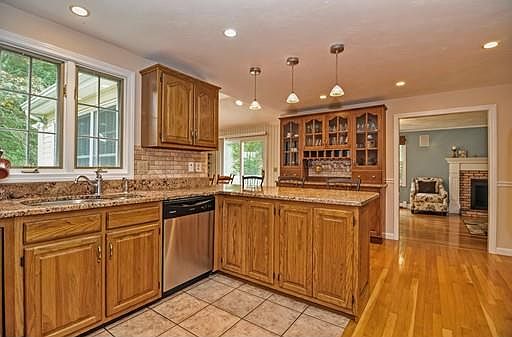 Enjoy the sounds of nature from every room of this wonderful 4 BR, 2.5 bath home. This custom built colonial abuts conservation and is located in one of Mansfield’s most sought after neighborhoods. This unique colonial with its beautiful wraparound porch awaits its next family. The home boasts a kitchen with a sun filled breakfast nook or dining area, with sliders that lead out to a private deck overlooking an over sized yard. This home is perfect inside and out for gatherings of family and friends. The HUGE front to back living room with custom built book shelves and gas fireplace sets the stage for your new stories to begin. The first floor also provides a second living room or formal dining area. Hardwood floors through out. Enjoy quiet evening and relaxation on the amazing maintenance free front porch. Close to great schools, shopping and fine dining, 3 miles to commuter rail!