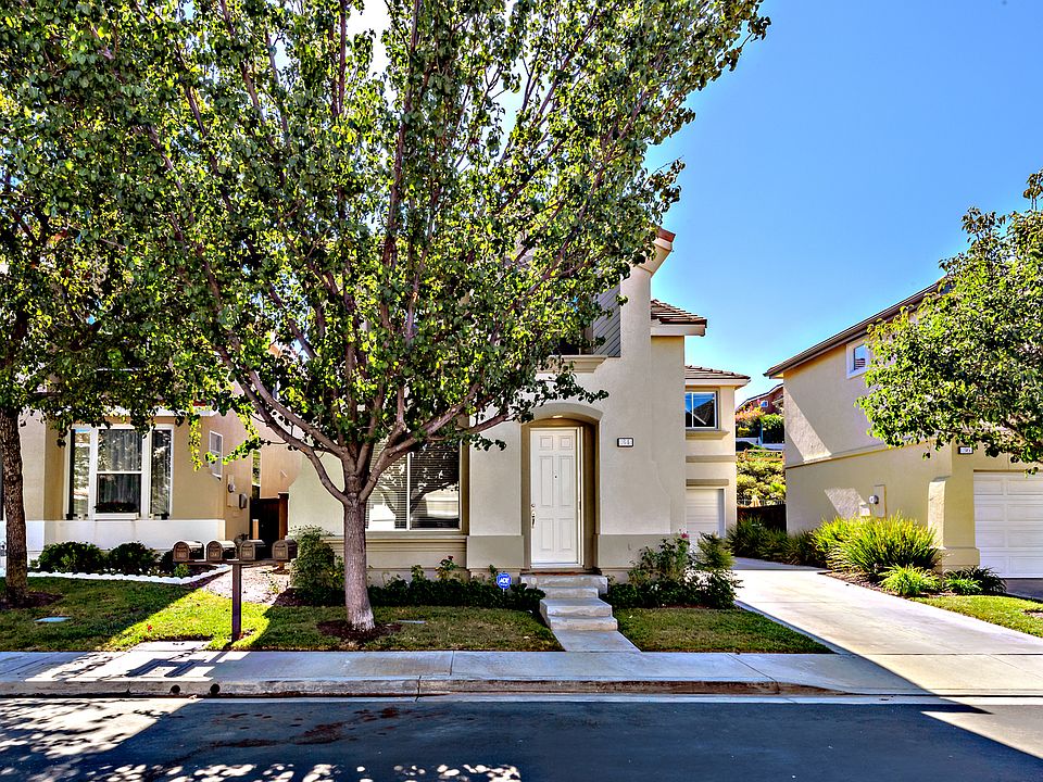 Beautiful Traditions home located in the prestigious and highly desirable community of Las Flores. This home offers 3 bedrooms plus loft and 2.5 bathrooms in an open floor plan with an abundance of windows and natural light designed for comfortable living. Newly-remodeled and re-configured granite island kitchen w/gorgeous stone back splash, premium white cabinetry, stainless appliances including new Bosh Dishwasher and wine fridge & sunny breakfast nook. Your second level boasts a roomy master suite with large walk-in closet, new high end cabinets, new double sinks and faucets and new granite counter tops. Secondary bathroom has also been updated with new granite counter tops, sinks and faucets. Brand new paint throughout accentuate the beautiful crown moldings and rich hardwood floors. Relax in your large over-sized back yard (one of the largest in the Traditions Tract) with open views offering a perfect setting for entertaining or dining Alfresco. Enjoy a premier location just a short walk to the association pool, trails, parks and California Distinguished Las Flores Schools.