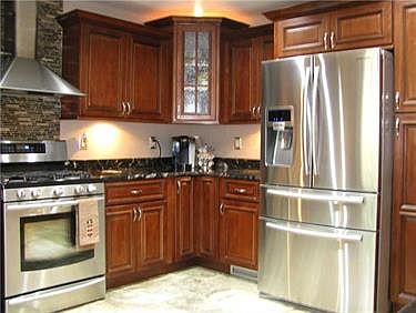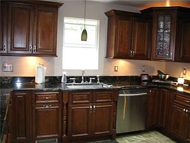 Beautiful kitchen with Cherry stained maple cabinets. Stainless steel appliances,granite counter tops, recessed lighting, under cabinet lighting, and tile floors. Newer roof, remodeled baths and central air. Walk up attic and lots of storage.