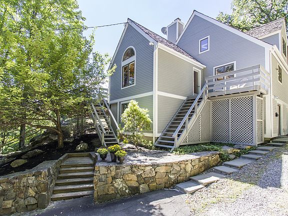 Make this your quiet space in the sky! With a treetop view this 3 bedroom, 3 full bath Timberpeg post and beam contemporary Cape with bonus in-law/au pair space awaits. Soaring spaces, large wooden beams and open floor plan create a "vacation at home" feeling. Nestled in a natural habitat with a large deck, rights to Pierrepont Lake and miles of nearby hiking trails this home invites hours of bird watching as well as an active lifestyle. Fully finished walk out lower level is perfect for a home office as well as a 650 square foot in-law setup. Twixt Hills HOA is a voluntary social group with lake and beach rights and activities. Close to elementary school. A perfect aerie! Come see. Please note, pictures with furniture are from when the owners lived there.