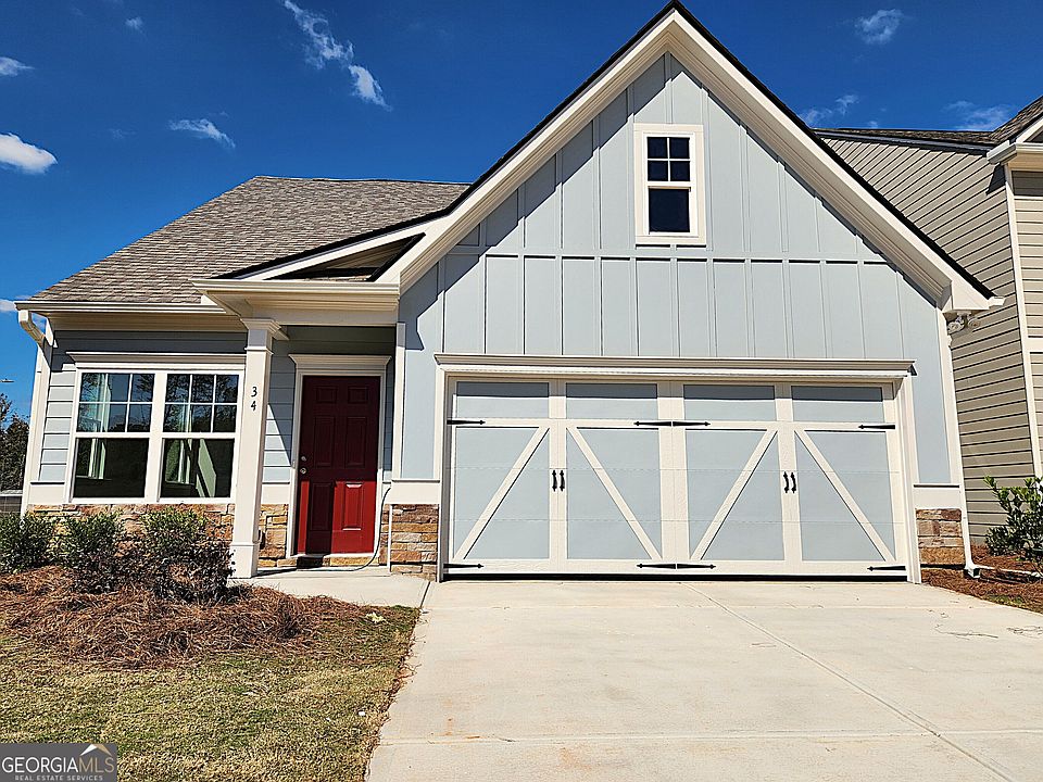 Welcome to The Waterford House by Piedmont Residential in our Retreat at Browns Ridge community in Newnan. Walking distance to Ashley Park open air shopping mall and restaurants. This Charming Craftsman home features the main bedroom on 1st floor with two additional bedrooms and full bath on 2nd floor. Great split bedroom plan. Open concept living space on the main floor with big kitchen open to family room with large island with space for at least 3 chairs. Painted white maple wood cabinets in kitchen and baths. Granite tops in kitchen with stainless steel appliance package. Huge tile shower in owners bathroom and 2 sinks! 2 car garage with automatic opener and the most delightful covered back porch to enjoy! This beautiful home will be ready for move in September 2025.