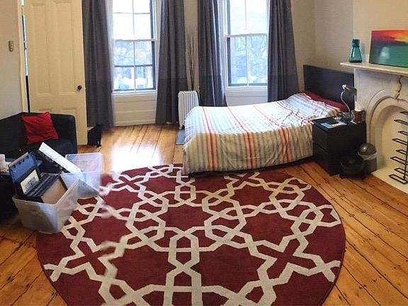 Newly updated 1 bedroom apartment on historical Union Park in the South End, available Dec 1st. Lovely open floor plan with two large rooms, ample closet space, and a smaller room with bay window- perfect for an office! Original pine wood floors, decorative fireplaces, and a beautiful view of the fountain! Charming original details throughout the unit, and a spacious deck off the back (accessed through large window). Floor plan pictured does not include bathroom, which is between kitchen and office. Inquire with questions or schedule a viewing! No broker fee! Excellent credit score and references required. Tenant pays first, last, and security deposit (1 month's rent) at time of move in. 6 month or 1 year lease available. Unit is unfurnished. Hot water is included, tenant pays heat and electric. Cats are OKAY. This is a non-smoking building. Free permitted street parking is available; parking spot in back of building available for $400/month.