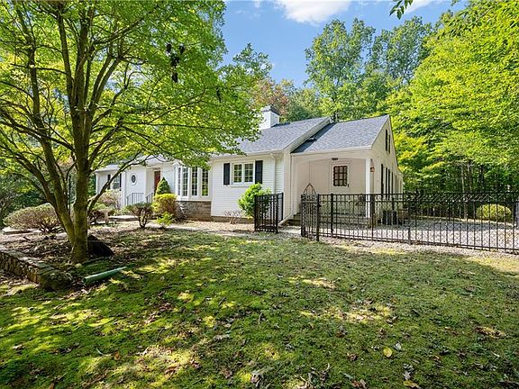 LOCATION! LOCATION! Beautiful custom designed Cape Cod located on 5.99 private acres steps from the Glocester Country Club Golf Course. This home features 2-3 bedrooms, 2 & ½ baths, 2 of the bedrooms located on the first floor are en suites measuring 13'x16'. Custom built-ins & crown molding throughout & plenty of storage. There are 2 fireplaces, one in the kitchen & one in the living room. A spacious sunroom with large windows allowing for lots of natural light. Newer roof, vinyl siding, tilt-wash windows, central AC. Fresh paint on the interior & refinished hardwood flooring throughout. Mud/laundry room off the kitchen leading to a covered porch through a Dutch door. Beyond the porch is a fenced in area. Kitchen features quartz countertops/backsplash & new French door refrigerator. Oversized deck off the back & large heated 2 car integral garage with workbench. All this located only minutes from shopping, restaurants, Routes 44 & 295, Smithfield & Providence. Schedule your private showing today!