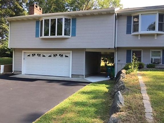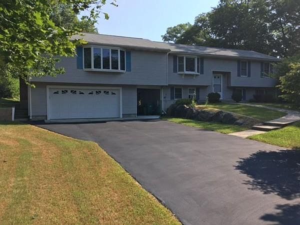 Stunning and spacious best describes this gorgeous raise ranch nestled at the end of a quiet cul de sac. Homes offers eat-in kit. with updated appliances, laminate flooring put down one year ago, plenty of cabinets, counter tops and access to private deck. Other features this home offers is the stunning 31x25 great family room which includes wood burning fireplace, cath. ceilings with custom lighting, bow picture window and custom bar that only needs the finishing touches. The living room is good size also with bow picture window. Home features a full in law in the lower level offering one or two bed rooms, full kitchen, a cozy living room, full bath and private entrance. This home offers a private 1/2 acre lot in family neighborhood, a great yard for the kids, vinyl sided storage shed, the convenience to the T-Station as well as shopping and restaurants. This home is a one owner home with many updates & features, too numerous to mention, come take a look and discover them yourself.