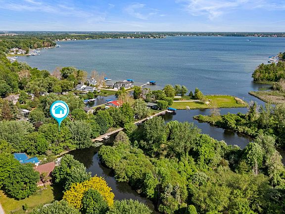 Rustic, custom-built stone and cedar home nestled along Lake Max’s peaceful channel in Venetian Village. Many updates including new wood flooring & tiled bathroom floors, light-fixtures, Juliet balconies, and much more! A tranquil setting with 195’ of waterfront & acres of designated wetlands across the channel. Turn summer moments into memories in this one-of-a-kind lake home. This 2896 SF home offers many areas to entertain or relax. The main level features a magnificent great room with beautiful vaulted ceilings, wood beams, & floor to ceiling field stone fireplace. This open & bright space has incredible views of the waterway, wetland flora & fauna through many windows.Step outside through any of the sliding glass doors to a covered porch that runs the entire length of the home. It could easily be screened in. The main level also features a spacious, open kitchen with a breakfast bar. A full bathroom, laundry room & attached 2 car garage complete this level. Ascend a new striking spiral staircase to the second floor. This level offers 3 bds, 2 full baths, and plenty of closet space. Each bedroom has a Juliet balcony w/ fabulous views. On a little more than 1/2 of an acre, there is no shortage of space for activities like gardening, fishing, or relaxing with friends. This home is steps away from your private dock. Peace, quiet, & privacy await you while being only one minute from the highly desired Lake Max’s main body of water. Some info taken from Marshall County. Buyer to measure for own satisfaction.