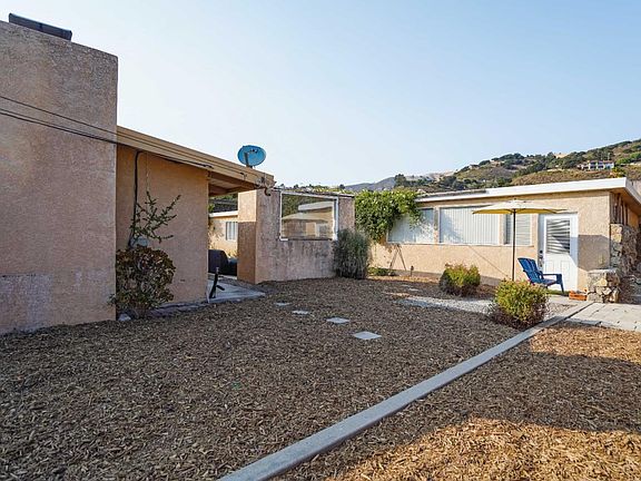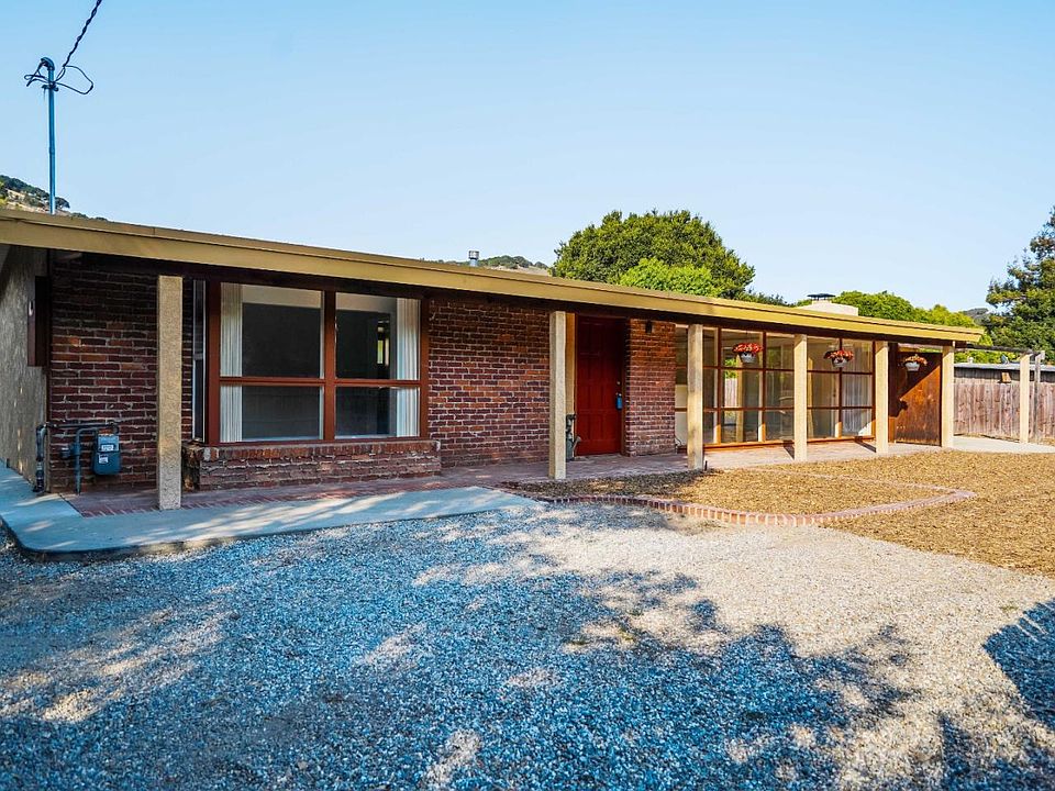 This brick and stucco home is built in the mid-century modern style and features two bedrooms, one bath, updated with guest quarters and a small workshop. Located in the heart of Carmel Valley Village, you are a short stroll to restaurants, shops, galleries and wine tasting. Tularcitos Elementary school is at one end of the street and the Post Office is at the other end, with the park, swimming pool and library right around the corner. The home has vaulted, open beam ceilings with a wall of windows to provide lots of natural light in the open plan kitchen/dining/living room. The kitchen features updated cabinetry and granite countertops, gas cooktop and oven with convection cooking and drying rack. There are tile floors that continue into a separate family room with a wood burning fireplace. There is a nice patio area with gas for your BBQ, and ample off-street parking. Visiting guests will enjoy the detached guest quarters.
