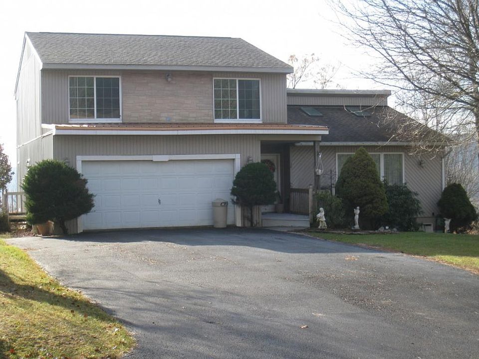 LOVELY TWO STORY WITH BEAUTIFUL VIEWS. NEWLY FINISHED PROFESSIONALLY PAINTED ROOMS WITH NEW CARPETING. OPEN CONCEPT FIRST FLOOR WITH CATHEDRAL CEILINGS AND LOTS OF NATURAL LIGHT WITH NEW SKYLIGHTS. SLIDERS TO OVERSIZED REAR DECKING. ROOF 6 YRS OLD, NEW KITCHEN BACKSPLASH. SIDE ENTRANCE TO MUDROOM AND HALF BATH, PLUMBED SO COULD BE FIRST FLOOR LAUNDRY. FULL UNFINISHED LOWER LEVEL EASY TO FINISH OFF