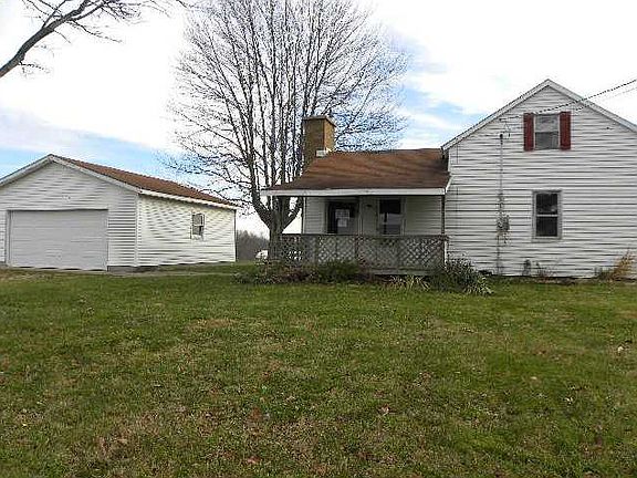 Price Reduced!!! Let's talk country!!!! Countryside views!!! Older farm home sitting on 1 acre of land. Living Romm has a Brown County Stone Hearth and Wood Stove. Kitchen with updated cabinets and breakfast area. Large Laundry area. Two bedrooms, 1 bath. Large covered front porch and rear patio. Large attic area ready to be finished into more living space. Propane furnace and central air. Two car detached garage and storage shed. This home is ready to make it your own.
