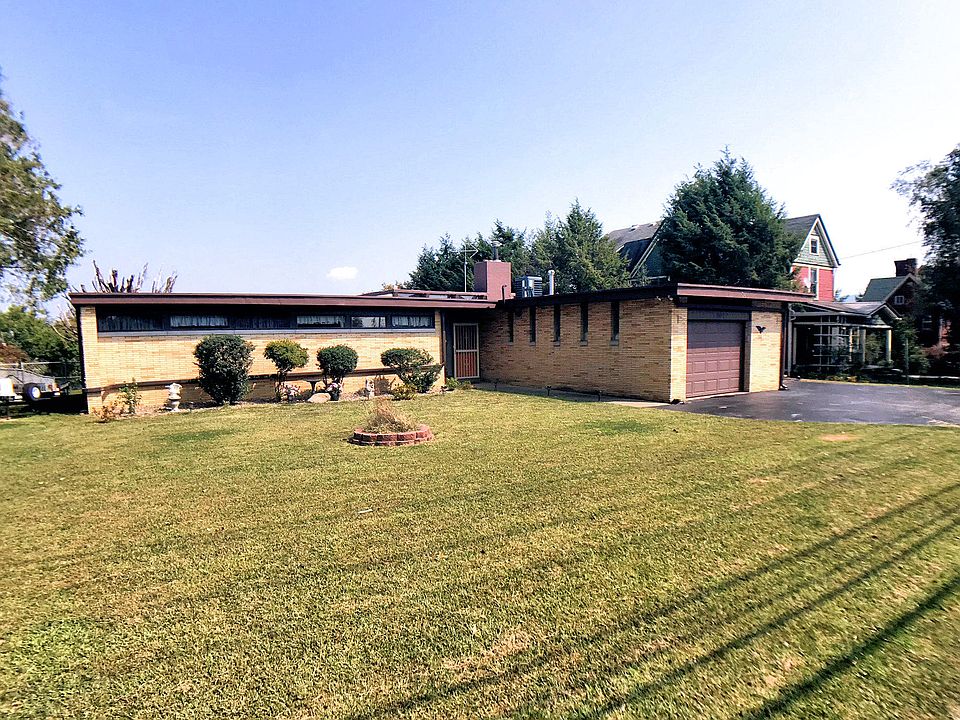 ABSOLUTELY STUNNING! Open and spacious 3 bedroom 2 bath brick ranch with soaring 12' high beamed ceilings. You won't want to miss these amenities - new Pebblestone flooring, nice sized kitchen with plenty of cabinetry, a breakfast bar & pantry, impressive windows along the back of the home provide tons of natural lighting, major closet space, beautiful woodwork & built ins, gorgeous wood burning fireplace, huge fenced yard, rear covered patio, new central air and GFA furnace, plus radiant floor heating, security system, garage parking and so much more!