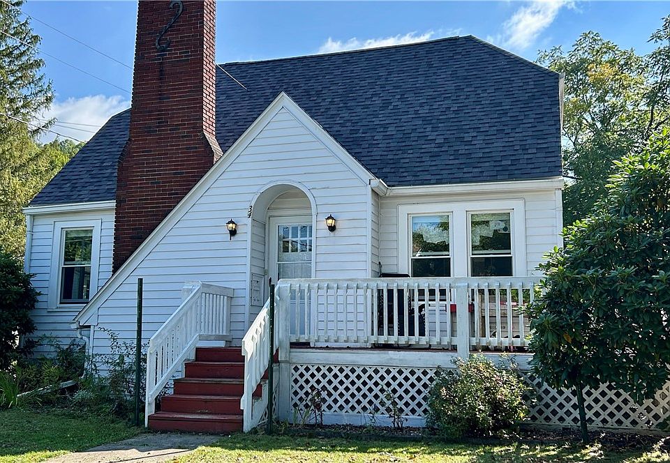 Inside, you’ll find gleaming hardwood floors, tastefully remodeled baths, replacement windows, and the possibility of one-level living. The first floor features a spacious living room with wood-burning fireplace, a formal dining room, an updated kitchen, a bedroom, and half bath. Upstairs are two additional generously-sized bedrooms and a chic renovated full bath.