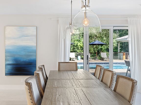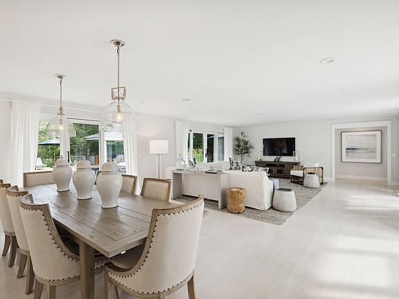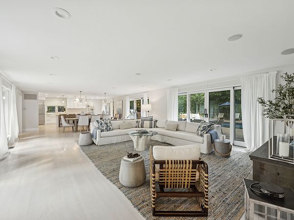 This fully renovated property sets the standard for a Hamptons getaway. Located in the heart of Wainscott this exquisite property combines timeless elegance with modern amenities, making it the perfect retreat. This very bright and welcoming home boasts approximately 3,600 sq.ft. on all levels, with a primary bedroom on the first floor.With 5 inviting bedrooms and 3.5 thoughtfully designed bathrooms, there's plenty of room for everyone. The open and bright ground level centered around the dining area is perfect for entertaining. The kitchen is a chef's dream, equipped with quartzite countertops, shaker-style cabinetry and Thermador appliances, ensuring both style and functionality.The primary suite is a sanctuary of its own, featuring direct access to the pool, new custom closets and a spa-like bathroom with a steam shower, perfect for unwinding after a long day. The lower level has been fully renovated to include a recreation area, office, two additional bedrooms, a full bath, laundry room, and an entertainment area with custom built-in cabinetry and a refrigerator.The outdoor space is nothing short of spectacular. The backyard has undergone a complete transformation, featuring a 20 x 40 heated pool, a cabana and outdoor kitchen. An expansive two-level mahogany deck with railings overlooks the pool area, where you'll find a luxurious cabana with a large wood-burning masonry fireplace, TV, speakers and built-in heaters. The outdoor kitchen is perfect for al fresco dining, complete with quartzite countertops, a grill, refrigerator, ice maker, and an imported Italian wood-burning pizza oven.The entire property has been meticulously landscaped and hardscaped, including a custom electric driveway gate, new property gates and landscape lighting, ensuring both privacy and curb appeal. Some additional perks include an outdoor shower, all indoor surround sound system, A/C, a security system, an attached two-car garage and additional space for parking.Embrace the Hamptons lifestyle in this modern ranch, where every detail has been carefully curated to create the ultimate retreat. Whether you're hosting summer soirées or enjoying peaceful evenings by the fire pit, this property offers the perfect blend of luxury, comfort, and the quintessential Hamptons charm.