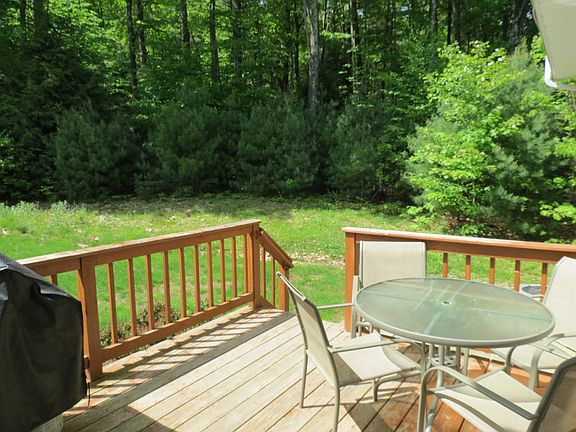 There's no other condo community like West Meadow Estates and this end unit is one of the most privately situated! With hardwood floors throughout the main living area, this level boasts a spacious kitchen with granite counters, dining area with balcony, large living room accessing a back deck and a half bath with laundry facilities. On the 2nd floor, you'll find the master bedroom with it's own bath, cathedral ceiling, three closets and another balcony. The second bedroom has a partition giving privacy if sharing or could be a dressing area. This level also has another full bath. The 3rd floor or loft level has another separate room if you need a family room, an office, exercise or hobby space. The lower level consists of a large main entry room, a 1 car garage bay and storage area where you'll find the home's utilities. Come see if condo living in the woods is for you!