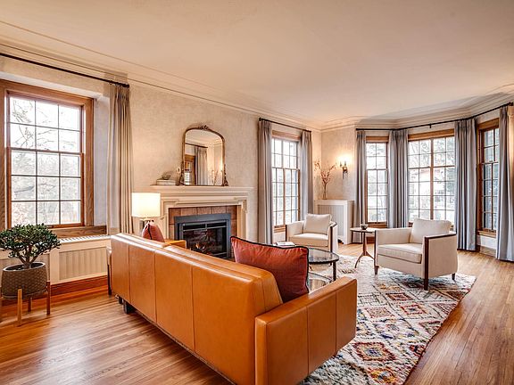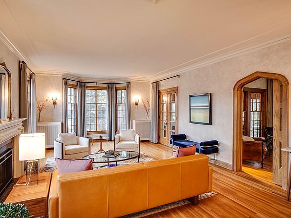 Special setting with spectacular year-round views of Minnehaha Creek. High on the hill this one-of-a-kind shake and brick home offers generous living and entertaining spaces. Entry foyer with period tile and wrought iron details. Stunning living room with gas fireplace, tall ceilings, and numerous windows. The main floor family room is flooded with natural light with an additional fireplace, music area, and a lovely perspective of the creek. Main floor office with original built-ins and beautiful paneled pocket doors. Large 3 season porch with vaulted ceilings and gas fireplace overlooks the rear terraced gardens. Spacious updated kitchen with solid surface counters and an abundance of cabinetry. Original plaster work, detailed trim work, and wood flooring throughout. Large primary suite with updated en-suite bath. Quietly tucked by the creek, yet very convent to downtown and neighborhood amenities. A wonderful opportunity - this special home just gets better with each new owner.