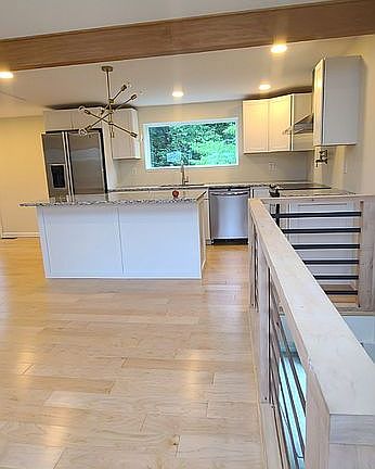 This is a great house in a nice neighborhood ready for a new family. Redone with some style & nice amentities. Enter the home and you see beautiful open and airy spaces, vaulted ceilings with an exposed beam. New leaded glass doors, Pella windows and Velux skylites. Beautiful kitchen with stainless steel appliances, gorgeous granite counter tops and a pot filler faucet at the range. Hardwood floors in main living area which boasts an open kitchen with a dinning nook and living area, a large main bedroom with access directly to the back deck, and a walk in closet. There is also an additional nice sized 2nd bedroom with vaulted ceilings and walk in closet, as well as a full sized bath to finish off the first floor. Make your way to the back door onto the outside deck area that has a built in bar top that runs the span for a lots of extra seating which overlooks the nice back yard. Then make your way back inside to the stairs which takes you to the lower level, which is exposed so you get nice light. There is a very nice sized second family room with a modern fireplace, fully equipped with heat, and a 2nd full bath, and a 3rd nice sized bedroom/office or workout room. The outside is truly there for entertaining and play. Very nice sized back yard and side yard that has a simple fIrepit area to relax and enjoy this amazing home!