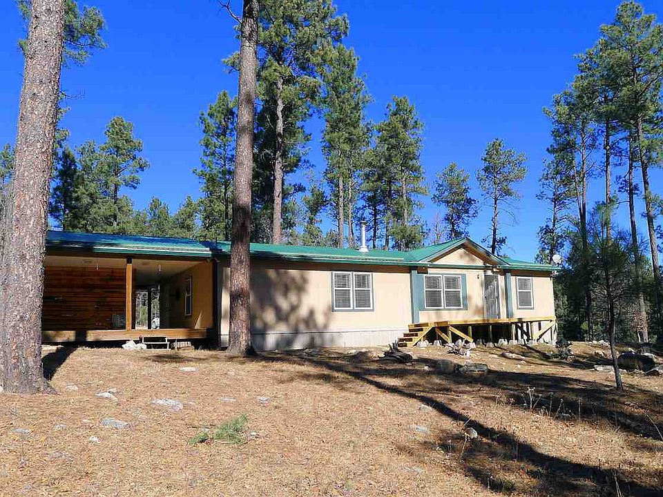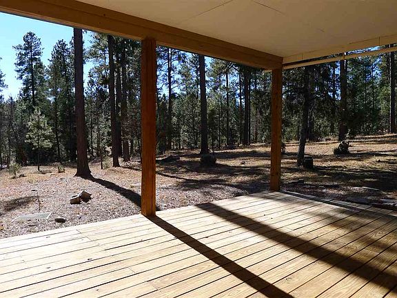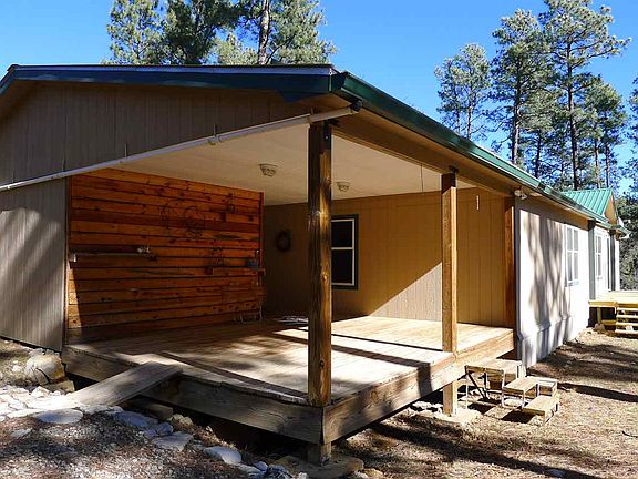 4.4 Beautiful Acres Backs to National Forest. Secluded area is surrounded by forest, land is level, great for horses, outdoor activities. Sparkling clean 2005 custom manufactured home has been lovingly maintained. Interior features entry mudroom, Lopi wood burning stove, vaulted ceilings, wood trimmed windows, textured drywall finish. Master suite has 10' x 9' study with built-ins. Energy efficient home has 2x6 exterior walls, metal roof. Attached carport & covered entry, lg covered deck. Long driveway.