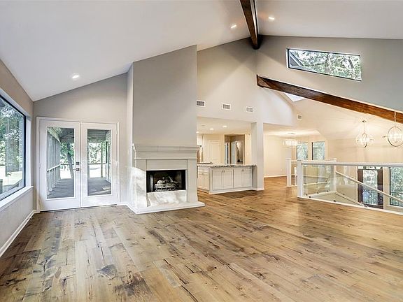 Rare opportunity to watch the greats of golf during the Champions Tour event from your own wraparound balcony in this beautiful, transitional/contemporary, custom home situated on the 7th hole of the Tournament Course. Completely renovated home features picture windows for spectacular views, hardwood floors, custom cabinetry and granite counters throughout. An open floor plan provides seamless movement between a large living area with exposed beams, impressive island kitchen, breakfast nook & formal dining. Kitchen offers commercial-grade appliances, extended breakfast bar & sizable pantry. Master suite with vaulted ceiling and sitting area boasts marble vanities, frameless shower, tub & large walk-in closet. Fine home has 3 other sizable bedrooms, game room & sunroom. Remarkable home provides best location in front of Woodlands on cul-de-sac lot with circle drive & true 3-car garage. Recently replaced roof, HVAC, windows. Low taxes, exemplary schools, quick access to major highways.