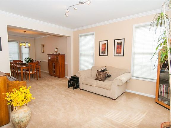 Upon arrival you are greeted by a covered sitting porch an upgrade to this immaculate Puccini model tucked away quietly on a cul de sac backing to lightly wooded area. 2 story foyer w/ wood floors leads to formal living & dining areas graced w/ crown molding, bay window & upgraded window treatments. Eat in kitchen w/bump out for breakfast area double door pantry, 42" cabinets w/crown molding & breakfast bar. Open to 2 story family room w/gas fp. Sliders from kitchen to double tiered timber tech deck w/built in benches & stairs to flat open backyard. Master bedroom offers double walk in closets, custom organizers, cathedral ceilings & ensuite bath w/ 2 sinks & soaking tub. Extra shelving in closets. Loft storage in garage. Clean & dry English basement w/full size windows. Seconds away from NYC Bus, shopping, all major roadways, restaurants & more. Close to NYC train. $50 /MONTH FEE INCLUDES COMMUNITY POOL MEMBERSHIP & FACILITIES.