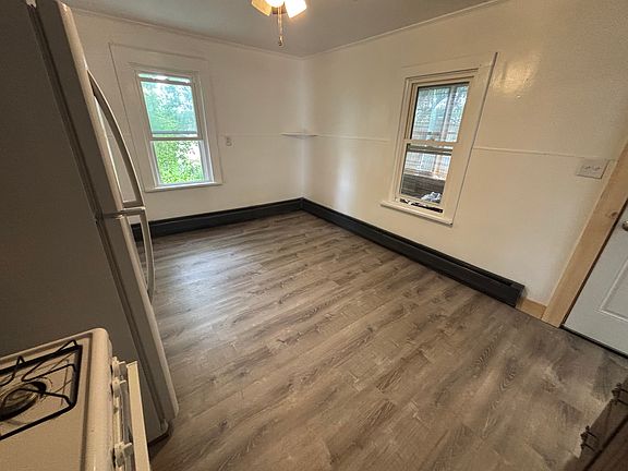 Freshly renovated large 3 bedrooms, one bath, upper unit. One off street parking spot. Washer and Dryer in unit. No Dogs Water and electric are tenants responsibility. No smoking in the unit. No dogs allowed.