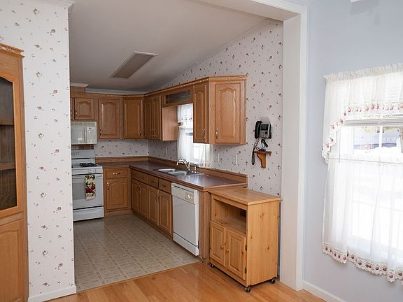 Welcome to Tara Estates, a 55+ community. This stunning traditional style double wide has composite decking as you walk to the front entrance. The cathedral ceiling height makes the home feel open, and the breakfast nook in the kitchen is a perfect relaxing space. The large living room with separate dining space keeps entertaining guests a breeze in this open space. Off the living room is a bonus space that can be closed off by it's french doors, and used for an office, den, library, or tv room. Down the hall is the guest bathroom, guest bedroom, laundry room, and primary bedroom with oversized coset and bathroom with a walk in shower with built in seats. The laundry room is also the entrance from the oversized 1 car garage, and out back is a screened in patio space. A wonderful property with lots of trees. Close to surrounding towns for easy shopping & dining.