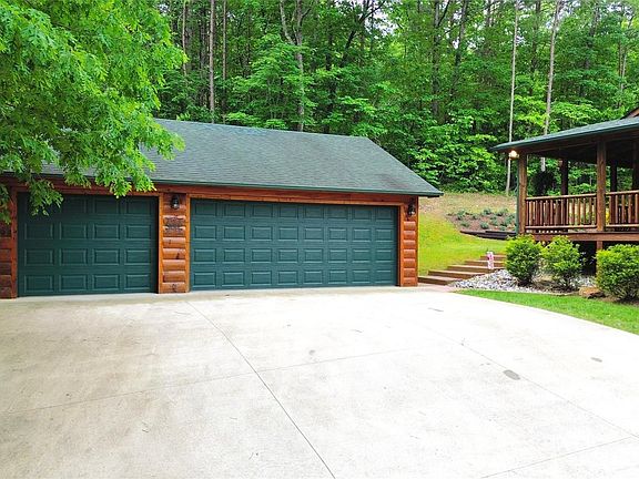 Looking for your mountain home? Look no further! Come see this stunning log cabin tucked away on 1.09 private acres, surrounded by trees for peace and privacy. This 2 bed, 2 bath home features a bonus loft, spacious open floor plan, and beautiful natural light throughout. Enjoy custom wood cabinets, gorgeous countertops, and a stainless steel range hood in the kitchen. Both bedrooms have French doors that open to a large wraparound porch with a hottub—perfect for relaxing or entertaining. The home also includes a detached 3-car garage, vaulted ceilings, and cozy wood accents throughout. Located in a gated community with a clubhouse, playground, and basketball court, and just 45 minutes from both Asheville and Hickory, NC. VRBOs are allowed, making this a great investment opportunity. Offered fully furnished for $525,000—move right in and start enjoying mountain living at its finest!