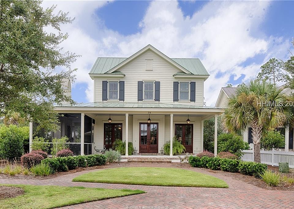 Beautiful home located in River Road neighborhood of Palmetto Bluff known as the garden district. This spacious home is located on a corner lot just steps away form the trail to the inland waterway. The open floor plan features, large living area for entertaining, Dining room, Chef's kitchen, marble counter tops, breakfast area, all opening on to a large screened porch with fireplace and patio. Owner's suite with spa like bath and guest room or study and full bath on main. Second floor has two additional bedrooms and bath. Fenced yard.