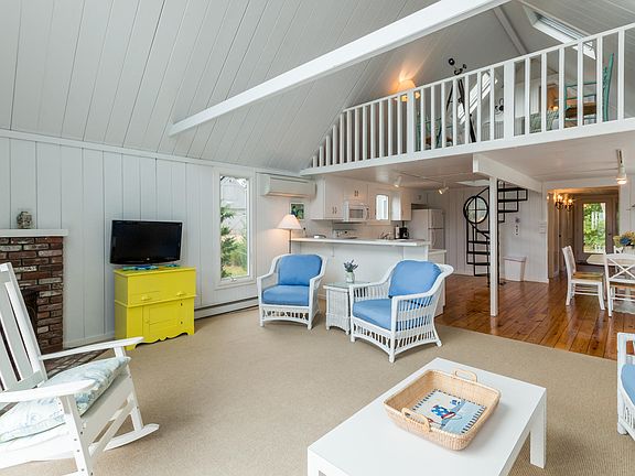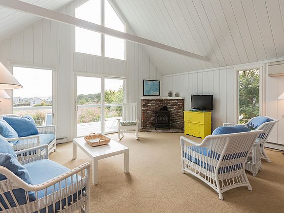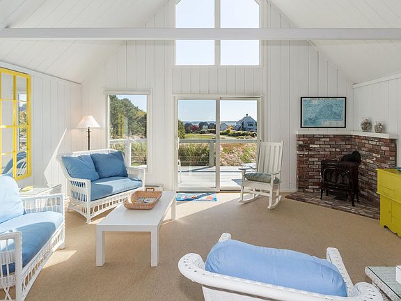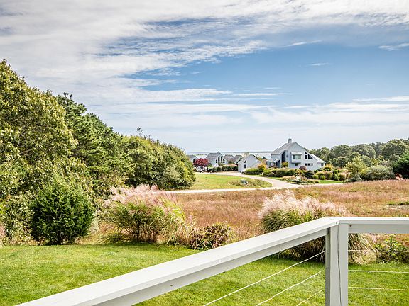 Waterview Farms - Water views from both living levels and expansive deck, walk to private association beach, kayaking, boarding and common lands from this ideal location. Adjacent to Farm Neck golf course if golf is your passion. This architecturally fabulous three-season home is set on a quiet meadow with views of 2.5 mile Sengekontacket coastal pond and Nantucket Sound beyond. Tastefully renovated, air conditioned home creates the ultimate Vineyard experience. With shiplap cathedral ceilings and walls, large windows, and three sets of sliders to oversize deck, the house lives large. It offers incredible natural light throughout the day. The open living room, dining room, and kitchen take advantage of the water views and exceptional wraparound deck. The master en suite is away from the heart of the house for privacy. It features a water view, sliders to the deck and outside shower. A cozy guest room, full bath, and laundry complete this floor. A delightful second floor suite will keep your guests coming back to visit. This large bedroom features a full bath, unique angles, skylights, and a relaxing loft to take in the panoramic water views.