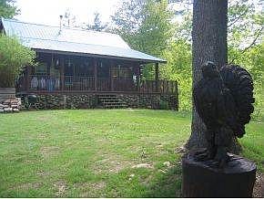 Rustic and rural, this Lincoln Log Home is located on over five acres of private and pristine land including a stream that borders the western edge of the lot. This home offers the classic Log Home style with a covered porch, wrap around deck and newer green metal roof. Relish in the beauty of the exposed interior log walls, wood ceiling beams and newer oak flooring. The living area has a large wood stove keeping the interior warm and toasty. One bedroom and full bathroom are on the first level with the second level offering two additional bedrooms and half bathroom, all with pine floors, walls and ceilings. The 40 x 60 post and beam barn boasts two levels and an interior workshop room. Two large pocket doors on each end provide access. Both the home and barn have been recently stained. Located only a few miles from Bow Lake and the nearby town forest for additional recreational activities, get in before the summer and enjoy true New Hampshire living! Brokered And Advertised By: Bean Group / Portsmouth Listing Agent: Jan Bodenski