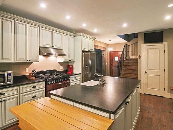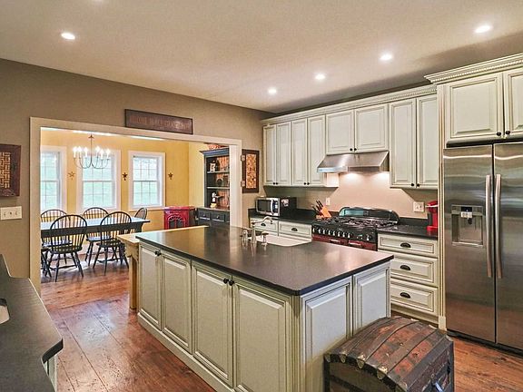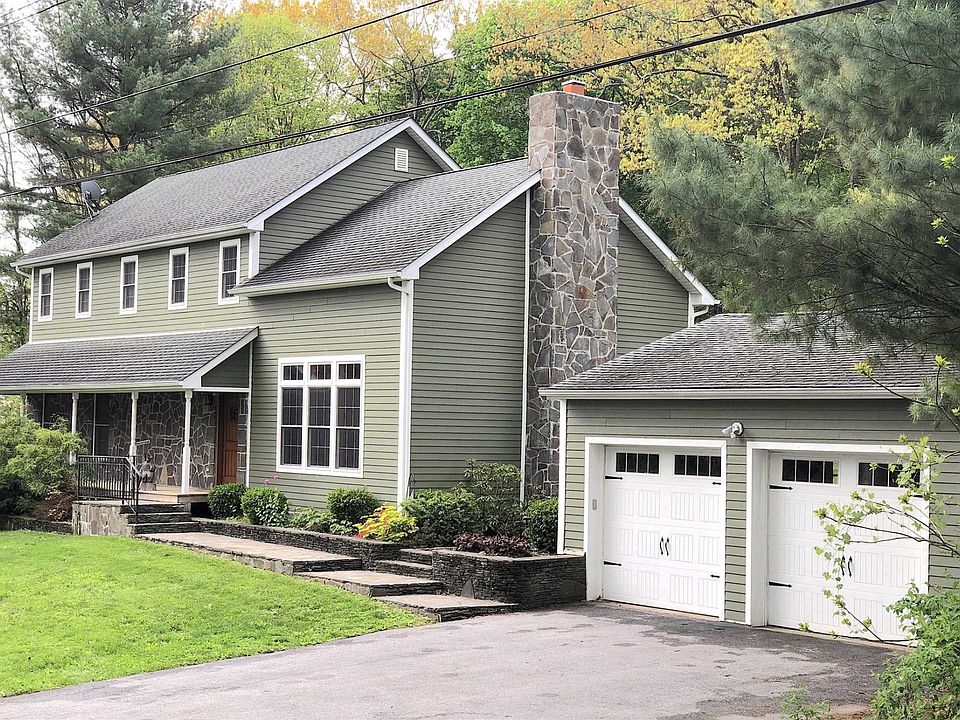 Custom Colonial completely remodeled down to the studs in 2006. High end materials throughout. Extensive hardscaping and stonework leading to a private back yard with custom patio and built-in fire pit. Detached two car garage with generator. First floor master with custom bathroom offering: radiant floor heat, tiled shower with dual shower head and additional rain shower, as well as steam. Wide board hardwood flooring throughout. The custom kitchen offers an oversized island with farm sink, wet bar, high end AGA Range and custom finishes throughout. Off of the foyer you're welcomed by an oversized family room with vaulted ceilings, reclaimed barn wood, an oversized wood burning fireplace and barn doors leading to one of the exterior patios. Beautiful Anderson windows throughout. Off of the kitchen you'll find a large dining room with lots of natural light leading you to the oversized deck and private back yard. Upstairs you'll find two additional bedrooms, a full bath, laundry room and additional office/den that could be used as a 4th bedroom. Note the small details throughout the home from the custom door hardware and lighting to the unique blend of old and new materials making this one of a kind.