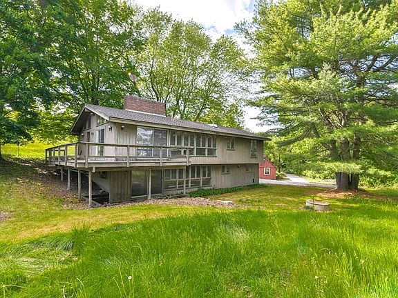 An original, elegantly simple, Acorn House, erected in 1972 and set in a 4.8 acre apple orchard. Warm wood, open floor plans, walls of glass and soaring ceilings are the signature elements of an Acorn home. The two-story Myopia model has a large sun-filled living room with a Danish L. Lange & Co. enamel and cast iron wood burning stove, kitchen and dining area with a fireplace, three bedrooms and two full baths on the main floor. The deck surrounds the living and kitchen areas and looks out over the garden. Downstairs is a long family room filled with natural light, a utility room and access to the two-car garage. There is also a barn with loft to house your mower, garden tools, and bikes. The structure is at one with nature and wildlife abounds in this quiet corner of town.