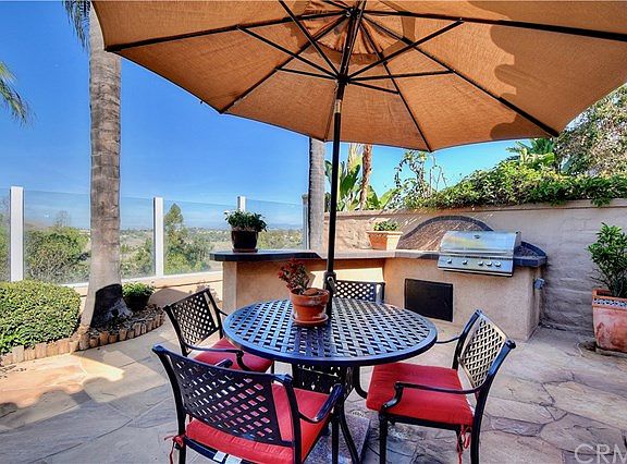 Located in a private gated community in the desirable Ocean Ranch area, this beautiful turn key home has many ammenities. The open floor plan includes a remodeled kitchen with center island, top of the line appliances, including built-in microwave and oven, 5 burner gas cook top, and eat at bar which opens to family room with vaulted ceilings and fireplace, and dining area with french doors that lead to the gorgeous back yard. There are panoramic views of hills and city lights from the outdoor kitchen area with built-in barbecue, and a sparkling pool with fountains and spa, and hardscaped with pavers for easy maintenance. The upstairs master suite has a walk-in closet and wonderful views also. The master bath has dual sinks, quartz countertops, separate tub, and dual shower heads. The second bath upstairs also has dual sinks and quartz countertops. There is a guest bath downstairs. The office area has custom built-ins and there are ceiling fans throughout the airy house. There is a three car tandem garage. This beautiful home is close to Dana Point Harbor, Salt Creek Beach, parks, shops, theatres, and restaurants.