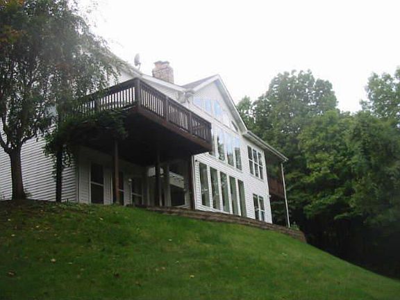 Stunning atrium ranch on 3+ private acres, on the bluff overlooking the Missouri River, with 200 ft backing to a lake. Lovely open floor plan with vaulted great room and stone see thru fireplace to the hearth room. Fabulous kitchen with vaulted ceiling, 42 inch custom hickory cabinets, Corian countertops and center island with second sink. Spacious main floor master suite walks out to a private deck. Master bath has huge jacuzzi and double shower. An inviting walk out lower level with family room and custom hickory cabinets, 2 bedrooms, full bath, and wet bar. Three car garage, with lifts, can accommodate 5 cars. Covered deck off breakfast room. Beautiful neutral decor throughout. Custom audio system in all rooms, Water Furnace geothermal heating system. Back up generator. Wood stove insert in lower fireplace. Huge storage area, with workshop, downstairs.